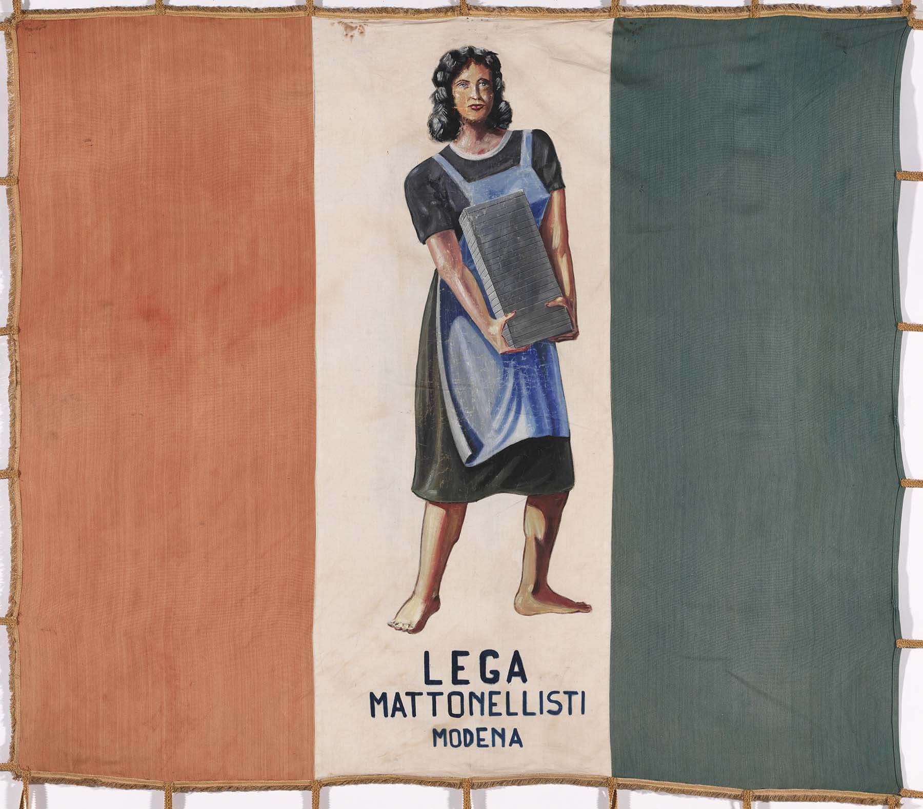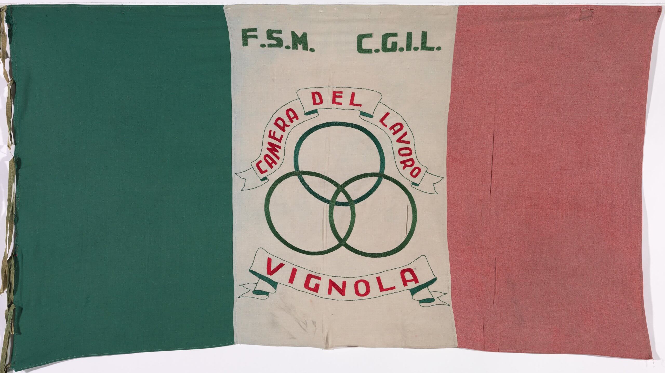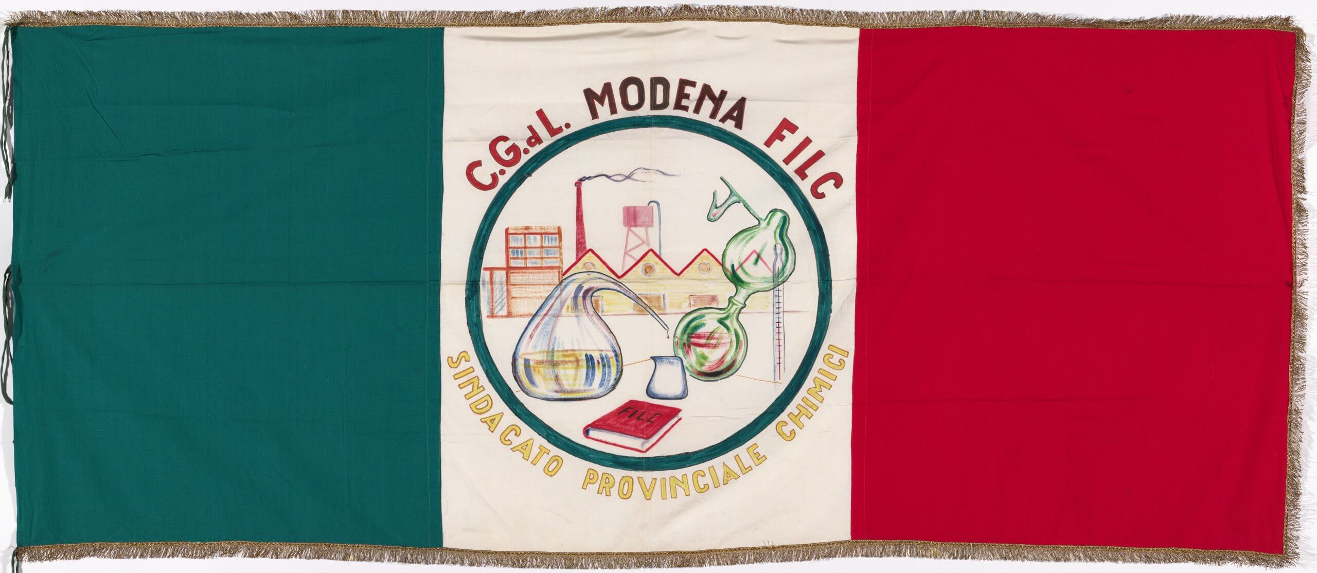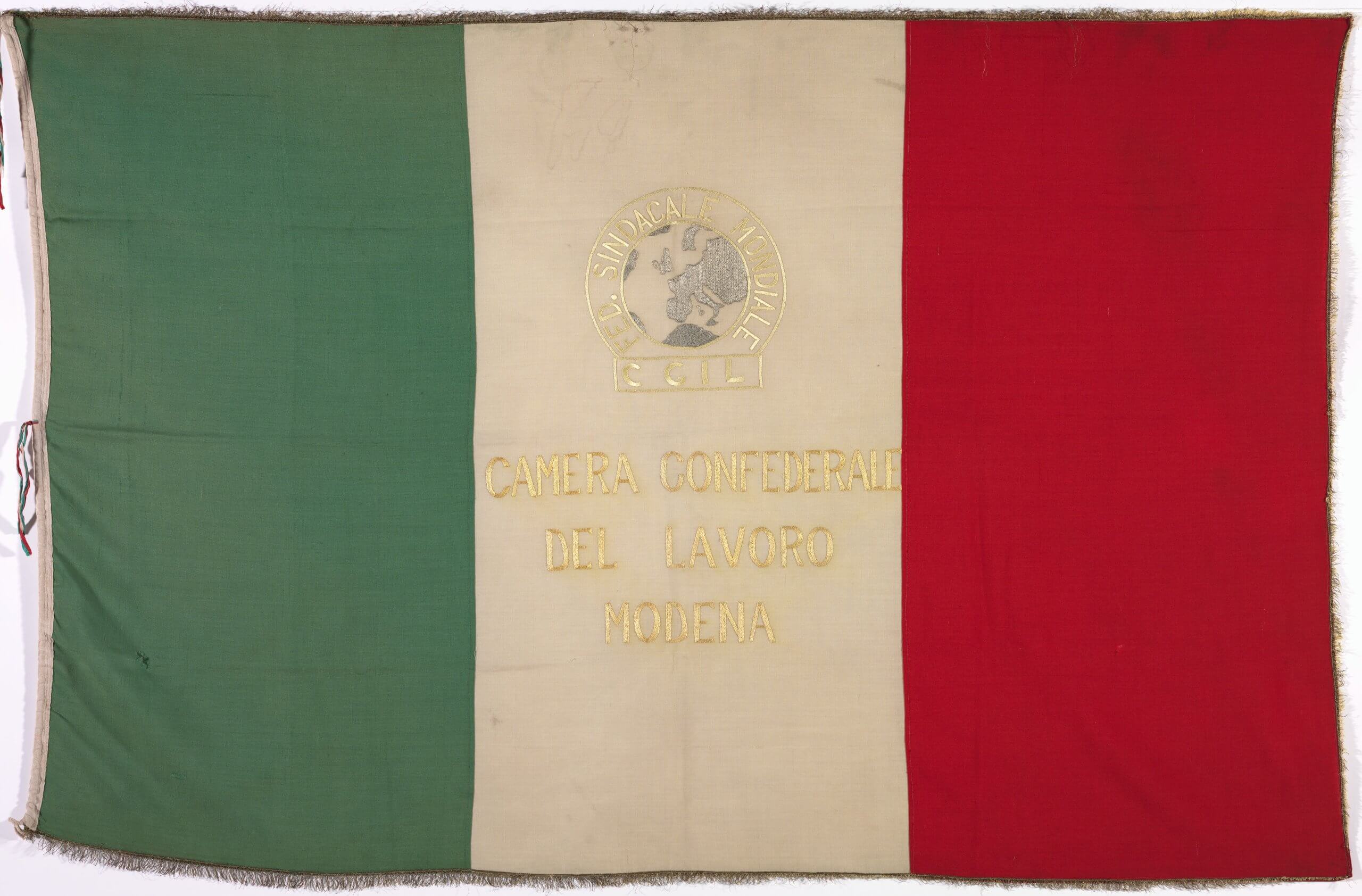 Nella collezione della Cgil di Modena sono presenti bandiere della Costituente della terra, dei sindacati agricoli come Federbraccianti e Federmezzadri, bandiere della pace (Migliarina, Lega muratori di Carpi), della cooperazione di consumo (Freto, Madonnina, Soliera e scuola sindacale e cooperativa ‘Caduti di Modena’), della sezione officine Corni dell’Unione donne italiane e del Fronte della gioventù.