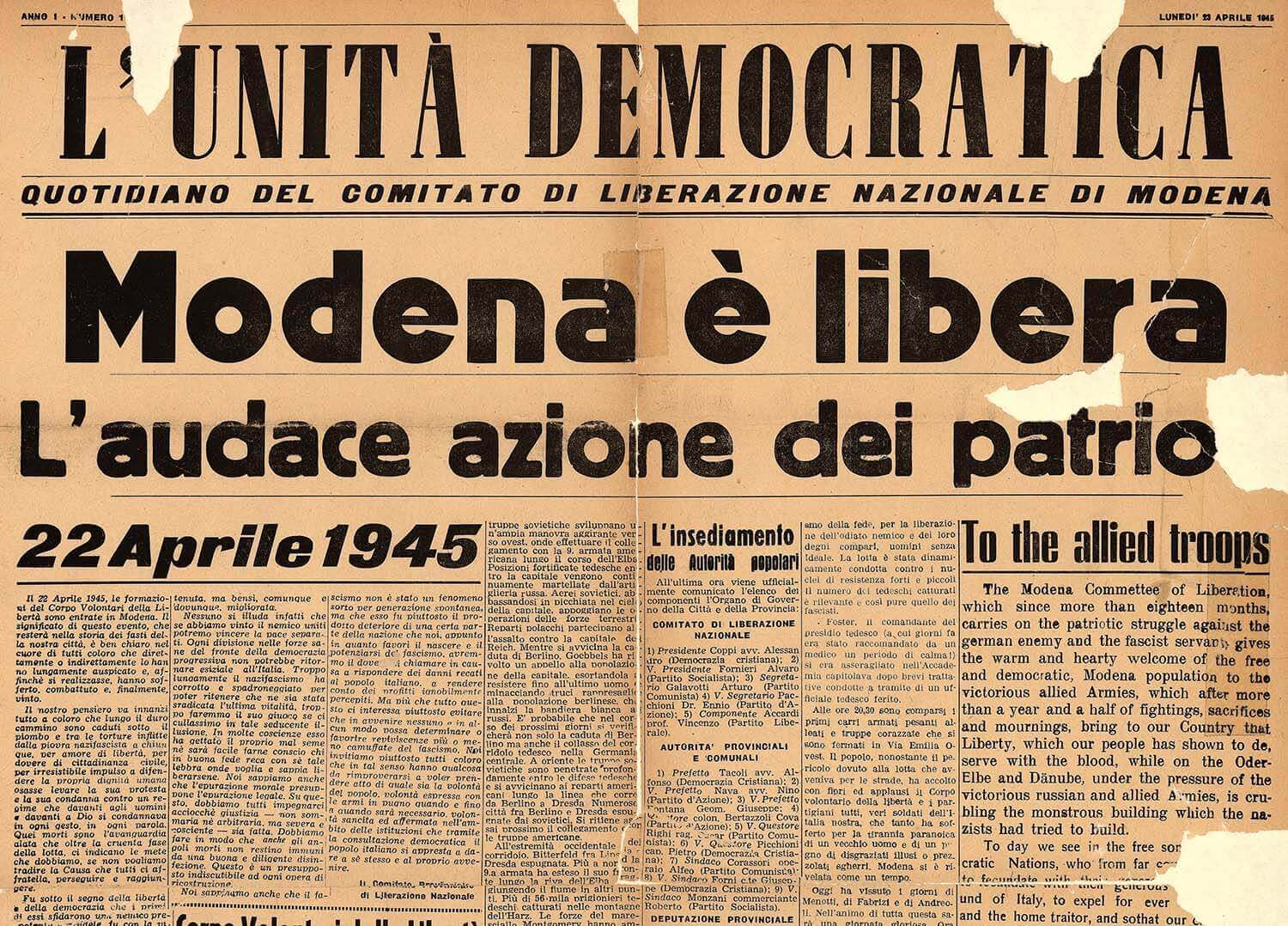 All’interno di questa raccolta si distinguono le fotografie relative alla liberazione di Modena avvenuta nei giorni del 22 e 23 aprile 1945; quelle della sfilata celebrativa della vittoria della Resistenza modenese che ha avuto luogo il 30 aprile 1945 ed ha visto migliaia di partigiani sfilare per le strade della città circondati da una moltitudine di persone che assiste e festeggia; ed infine quelle della prima festa della Liberazione del 25 aprile 1946, carica di attese e di speranze di futuro.